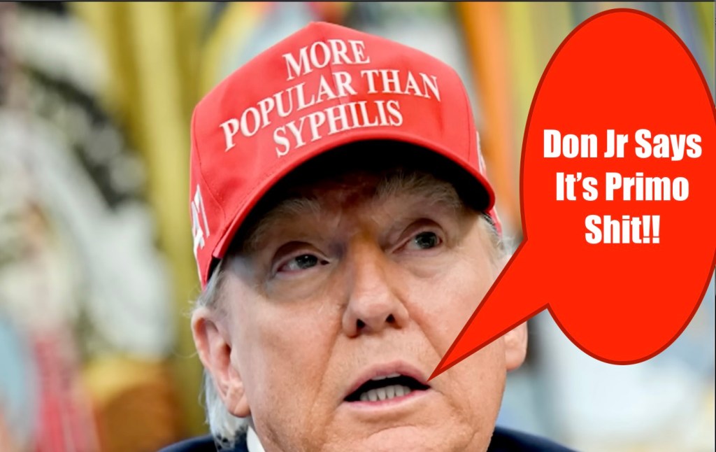 Donald Trump, a man who turned the “War on Drugs” into target practice for war criminals. Recently pardoned former Honduran President Juan Orlando Hernandez, who smuggled more than 400 tons of cocaine into the US and, in the process, turned his blowhole into his cellmate’s favorite snow globe. Perhaps that amount of Honduran marching powder could at least get Trump through an entire cabinet meeting without nodding off, and possibly persuade Pam Blondi to scissor JD Vance. Then again, after reading the love letter that Hernandez sent to Trump, I’m surprised his pardon wasn’t accompanied by a personal invitation to Donny-Do-Things’ oval orifice. Because while “cocaine is a hell of a drug”, Trump prefers to get high on his own supply. (AKA loves to sniff his own farts)