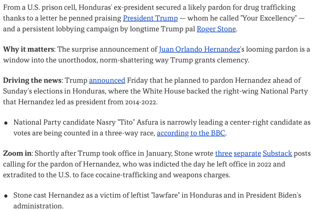 The Axios Article Quoted – https://www.axios.com/2025/12/02/trump-pardon-hernandez-honduras-former-president-letter