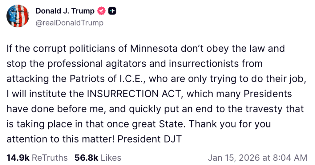 The Politico Article Quoted – https://www.politico.com/news/2026/01/15/trump-insurrection-act-minnesota-00730664