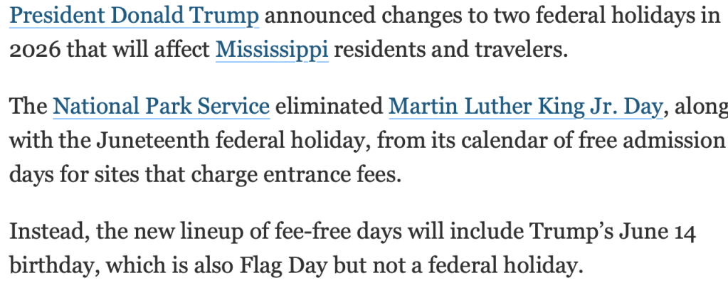 The Clarion Leader Article Quoted – https://www.clarionledger.com/story/news/2026/01/14/did-trump-cancel-martin-luther-king-jr-day-why-2026-federal-holiday-might-be-different/88177545007/