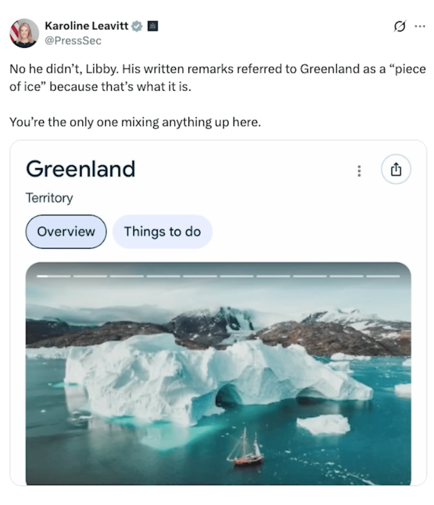 “Greenland is Iceland… Iceland is Greenland… Finkle..Einhorn..Einhorn..Greenland” – Karolying Leavitt