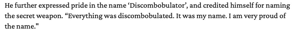 Donald Trump can’t stop bragging about a new military weapon he named, “The Discombobulator.” Although, can you really trust Trump’s reviews of its capabilities? Considering he once nicknamed himself “The Fastest Man Alive” after convincing Melania that premature ejaculation was a superpower. However, even when it comes to classified information, Trump can’t help but leak spoiler alerts like a rebellious fire hose. All hail The Discombobulator-In-Chief!! The only President to add: “took the most cognitive exams,” onto his Wikipedia’s “Glass-Half-Full Section.”