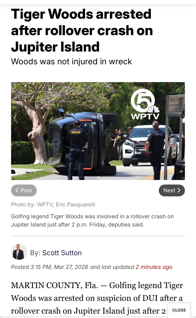 In Today’s Palate Cleaser, we learn that having a competent Caddy can mean the difference between a par for the course afternoon and ditching your cart in the rough before scoring a triple bogey on the field sobriety check…. Also that any good Caddy would have told Tiger to use use his driver.