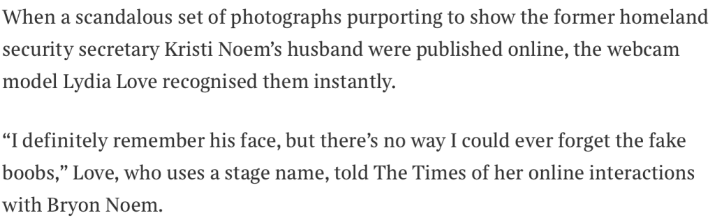 The Times Article Quoted – https://www.thetimes.com/us/american-politics/article/only-fans-kristi-noem-bryon-noem-lydia-love-ftzcdt7sh