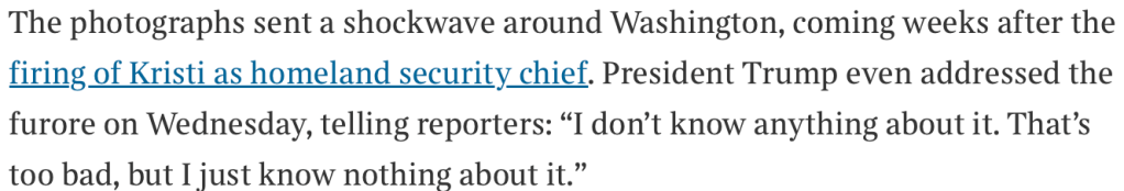 …..And here I thought the Homeland Security budget was inflated. I just really hope Kristi’s hornball-hubby uses wet wipes on those Mega-MAGA-ManMarries. Because the only thing worse than your neighbor’s kid getting knocked out by your dodgeballs is your neighbor’s kid getting knocked up by your dodgeballs.